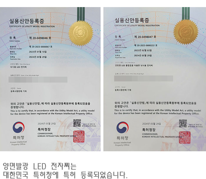 본 제품은 대한민국 특허청에 특허 등록되었습니다.
